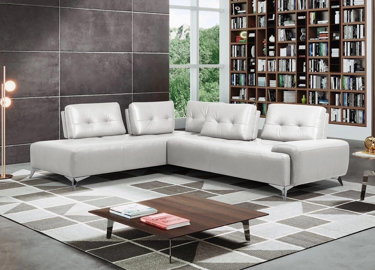 - OverviewDelight your living room with the Turano Sectional by Acme Furniture. It is upholstered using the highest leather in a pearl white finish. The simple but elegant contemporary look will combo well with any existing furniture. Featuring button-tufted backrests and seats for a classic element to the modern design. The adjustable backrests provide added comfort and support. The metal chrome legs make this piece pop and supply a sturdy foundation.