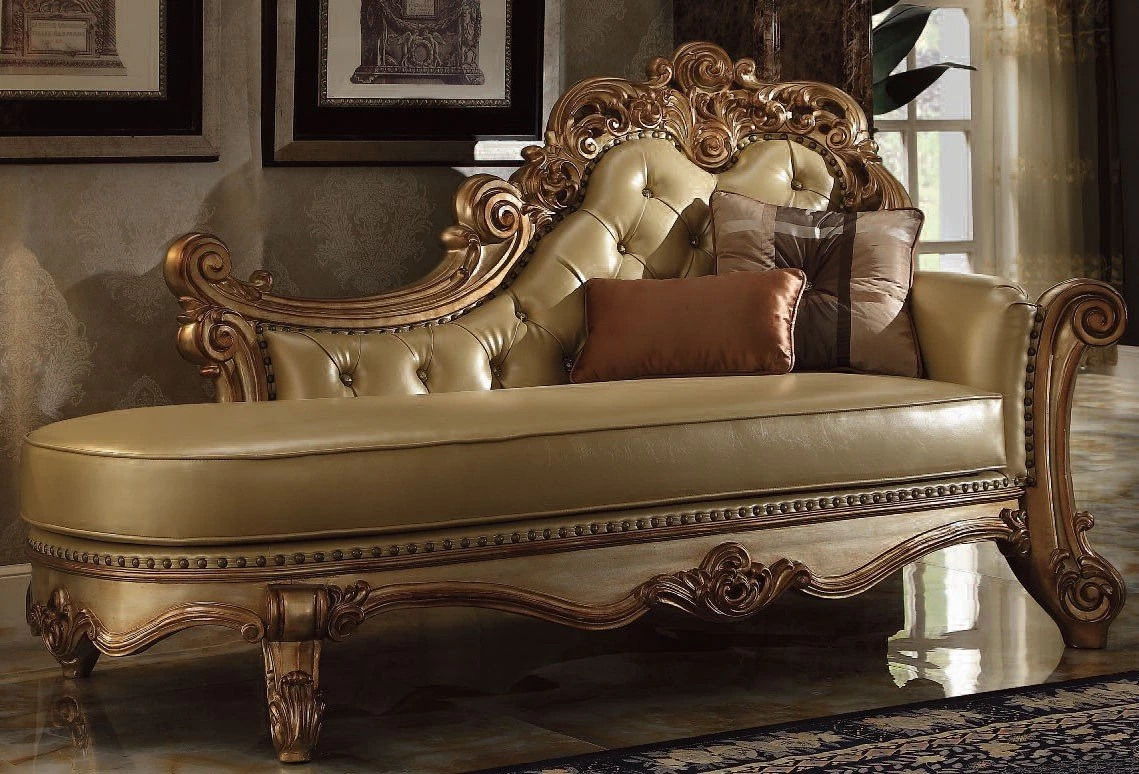 - OverviewCreate an elegant, traditional design in your bedroom with the Vendome Chaise by Acme Furniture. Hand-crated piece inspired from the luxurious design of the past, the Chaise features elaborate wood carving details and a sophisticated style. Among all decor elements produce a collection of timeless taste and appearance that will make any living room feel refined and comforting.