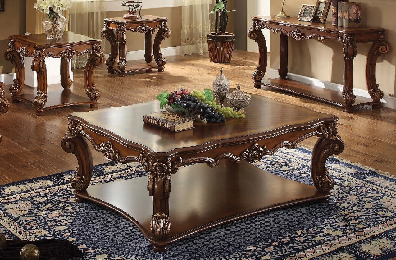 - OverviewCreate an elegant, traditional design in your room with this Vendome Occasional Table Set by Acme Furniture. Hand-crafted piece inspired from the luxurious designs of the past, this Vendome Occasional Table Set features elaborate wood carving details, sophisticated style and storage shelves.
