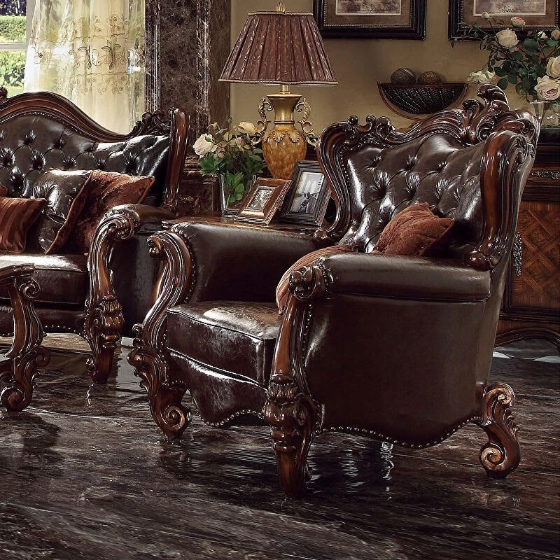 - OverviewThe Versailles Living Room Collection by Acme Furniture with a cherry oak finish will create an elegant, warm, and traditional taste in your living room. The Collection reflects a highly decorative base with scrolled feet, and the upholstered seats with the deep button tufted and nail head trim accents add classic character and represent luxurious detailing. The collection is your perfect choice for your living room.