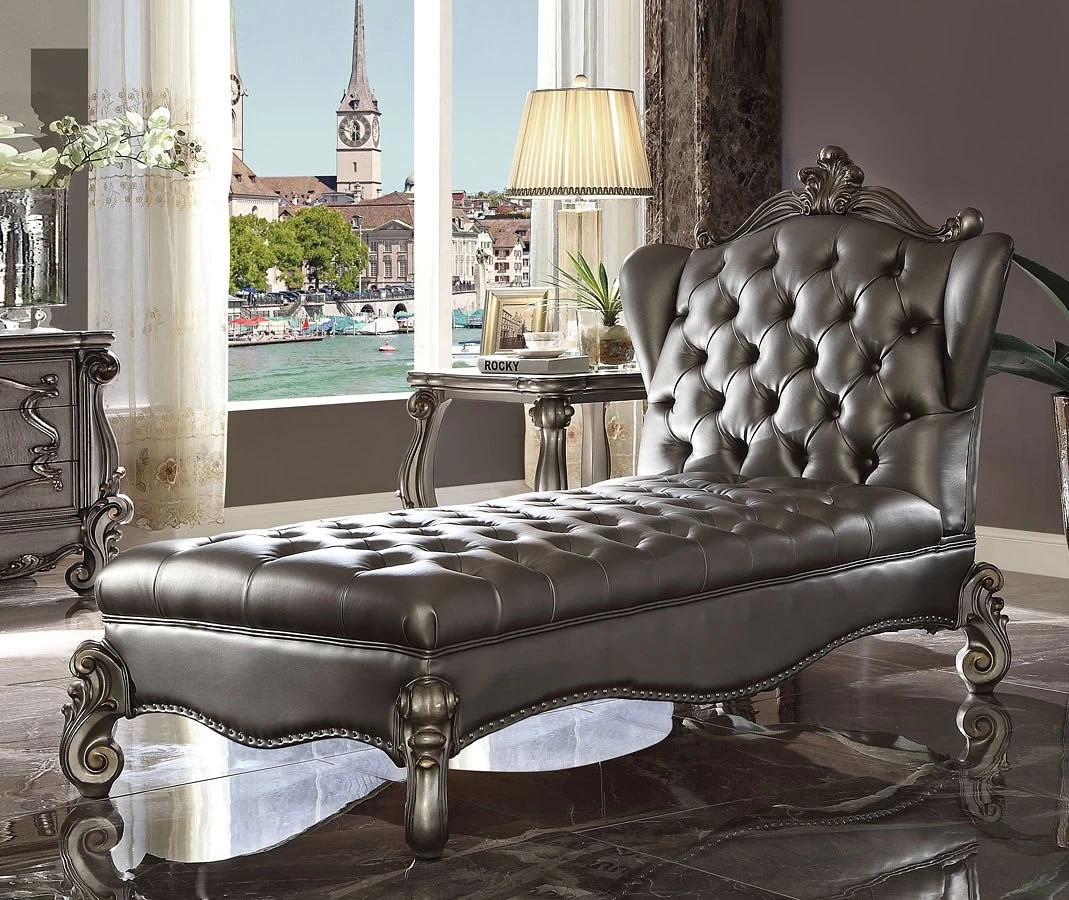 - OverviewThe Versailles Chaise by Acme Furniture will create you an elegant, warm and the traditional taste in your home. The chaise reflects highly decorative base with scrolled feet, and the upholstered seat and back with the deep button tufted and nail head trim accents add classic character and represents luxurious detailing.
