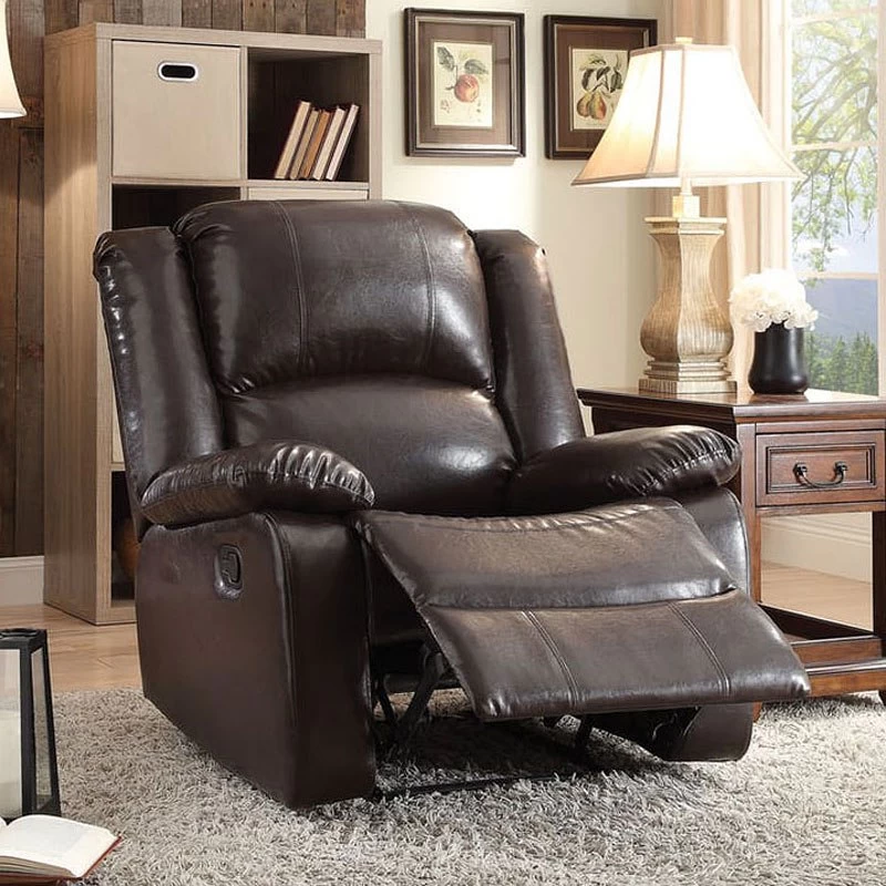 - OverviewThe Vita Recliner by Acme Furniture features an oversized head and back support, faux leather upholstered and overstuffed maximum comfort. Ease back with the finger-pull reclining function and relax your troubles away.